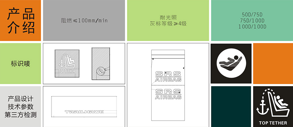 我們提供汽車專用拉鏈、標識扣、標識嘜、粘扣帶/刺毛帶,織帶/松緊帶,塑料扣件等其他汽車內飾、汽車座椅系統部件。